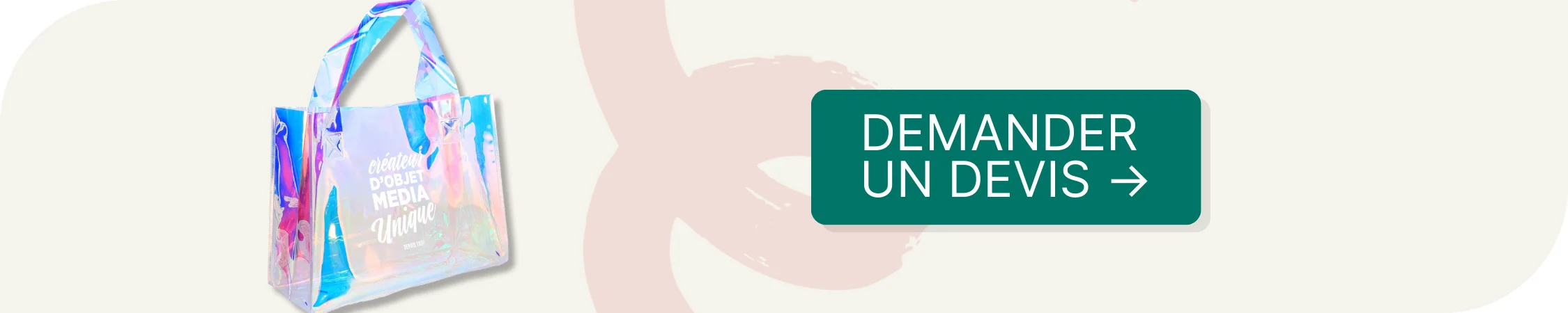 Impossible de passer inaperçu avec le sac holographique en PVC. Son effet lumineux attire immédiatement l’œil et en fait un support différenciant.